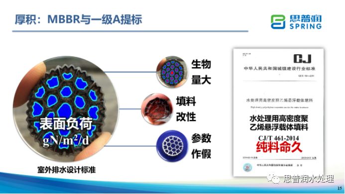 多年的改造經(jīng)驗(yàn),100項(xiàng)案例、600萬噸規(guī)模,讓思普潤MBBR改造建立了明確的技術(shù)路線。思普潤的設(shè)計(jì)理念獲得了國內(nèi)設(shè)計(jì)院的廣泛認(rèn)同,MBBR以表面負(fù)荷設(shè)計(jì)已納入新版設(shè)計(jì)標(biāo)準(zhǔn);表面負(fù)荷理念的推廣,進(jìn)一步證明了,對于懸浮載體,流化傳質(zhì)重要性遠(yuǎn)勝于生物量的意義,而以自養(yǎng)菌富集為主要目的的懸浮載體,亦不會有較厚的生物膜,填料改性增大生物量的技術(shù)迷霧被撩散;《水處理用高密度聚乙烯懸浮載體填料》行業(yè)標(biāo)準(zhǔn)對于懸浮載體參數(shù)的認(rèn)定,已深入人心。