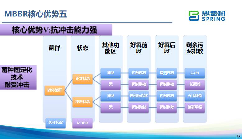 MBBR工藝采取菌種固定化技術(shù),耐沖擊性強(qiáng)。