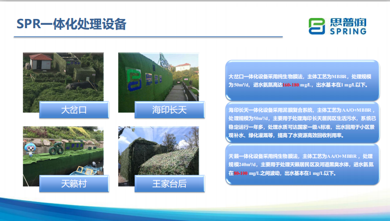 思普潤專注于MBBR工藝的研發(fā)與推廣,截至2019年5月,思普潤應用MBBR工藝累計實施了近800萬噸/日的工程業(yè)績,已在國內(nèi)26個省市實施污水處理廠新建、改造、村鎮(zhèn)污水點源治理、河道水環(huán)境恢復項目。思普潤已經(jīng)研發(fā)完成了出水可穩(wěn)定達到準IV類標準的MBBR工藝路線,目前在多個污水處理廠實現(xiàn)成功應用。