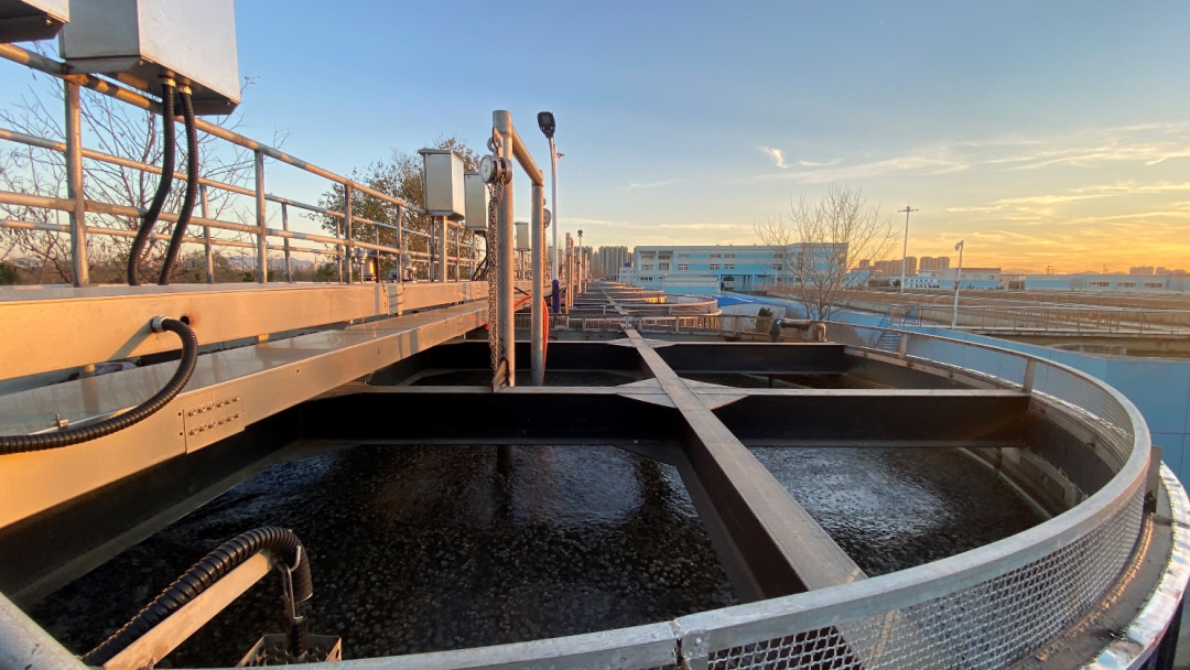 作為辛安河流域最大的污水處理廠—煙臺(tái)市辛安河污水處理廠現(xiàn)有兩期工程,處理規(guī)模共12萬m3/d,出水執(zhí)行《城鎮(zhèn)污水處理廠污染物排放標(biāo)準(zhǔn)》(GB18912-2002)一級(jí)A標(biāo)準(zhǔn)。2021年,隨著煙臺(tái)市經(jīng)濟(jì)的不斷發(fā)展,污水廠收集的污水量已經(jīng)超過其處理能力,亟需新增1萬m3/d的污水處理設(shè)施,出水要求一級(jí)A標(biāo)準(zhǔn)。因廠區(qū)無多余用地、建設(shè)周期緊張、低溫運(yùn)行標(biāo)準(zhǔn)高,公司給予高度重視,經(jīng)論證,新建BFM工藝系統(tǒng),以純膜MBBR系統(tǒng)為生化單元,耦合優(yōu)化深度處理單元,實(shí)現(xiàn)對(duì)來水中污染物碳、氮、磷全指標(biāo)穩(wěn)定達(dá)標(biāo)處理,并且采用裝配式的結(jié)構(gòu),以達(dá)到工期緊張的需求。利用廠區(qū)邊緣的綠化用地完成BFM工藝系統(tǒng)的建設(shè),生化及深度處理段的萬噸水占地僅為1417m2,是污水廠現(xiàn)有工藝的17%。該工程于2021年10月份建成運(yùn)行調(diào)試,懸浮載體區(qū)流化效果良好、懸浮載體掛膜效果良好,BFM工藝出水水質(zhì)優(yōu)于“準(zhǔn)V”類標(biāo)準(zhǔn),獲得了良好的實(shí)施效果,為保護(hù)辛安河這一省級(jí)美麗示范河做出重要貢獻(xiàn)!