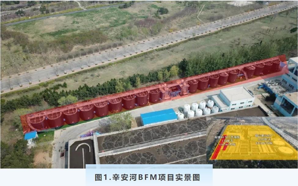 煙臺市辛安河污水處理廠設(shè)計處理規(guī)模12萬m3/d,出水執(zhí)行《城鎮(zhèn)污水處理廠污染物排放標(biāo)準》(GB18918-2002)一級A標(biāo)準。伴隨城市高速發(fā)展,污水廠已滿負荷甚至超負荷運行,影響出水穩(wěn)定性。2021年,實施煙臺辛安河污水處理廠技術(shù)改造工程項目,新建1萬m3/d污水處理設(shè)施,以減輕現(xiàn)有污水線運行壓力。新建設(shè)施面臨高標(biāo)準(TN<5mg/L)和缺地(可用地1417.25m2)兩大難題,傳統(tǒng)的活性污泥工藝難以滿足要求。最終采用青島思普潤水處理股份有限公司自主研發(fā)的生物集效工藝(BFM)實施,以短流程連續(xù)流生物膜工藝實現(xiàn)了對長流程活性污泥工藝的替代和顛覆。